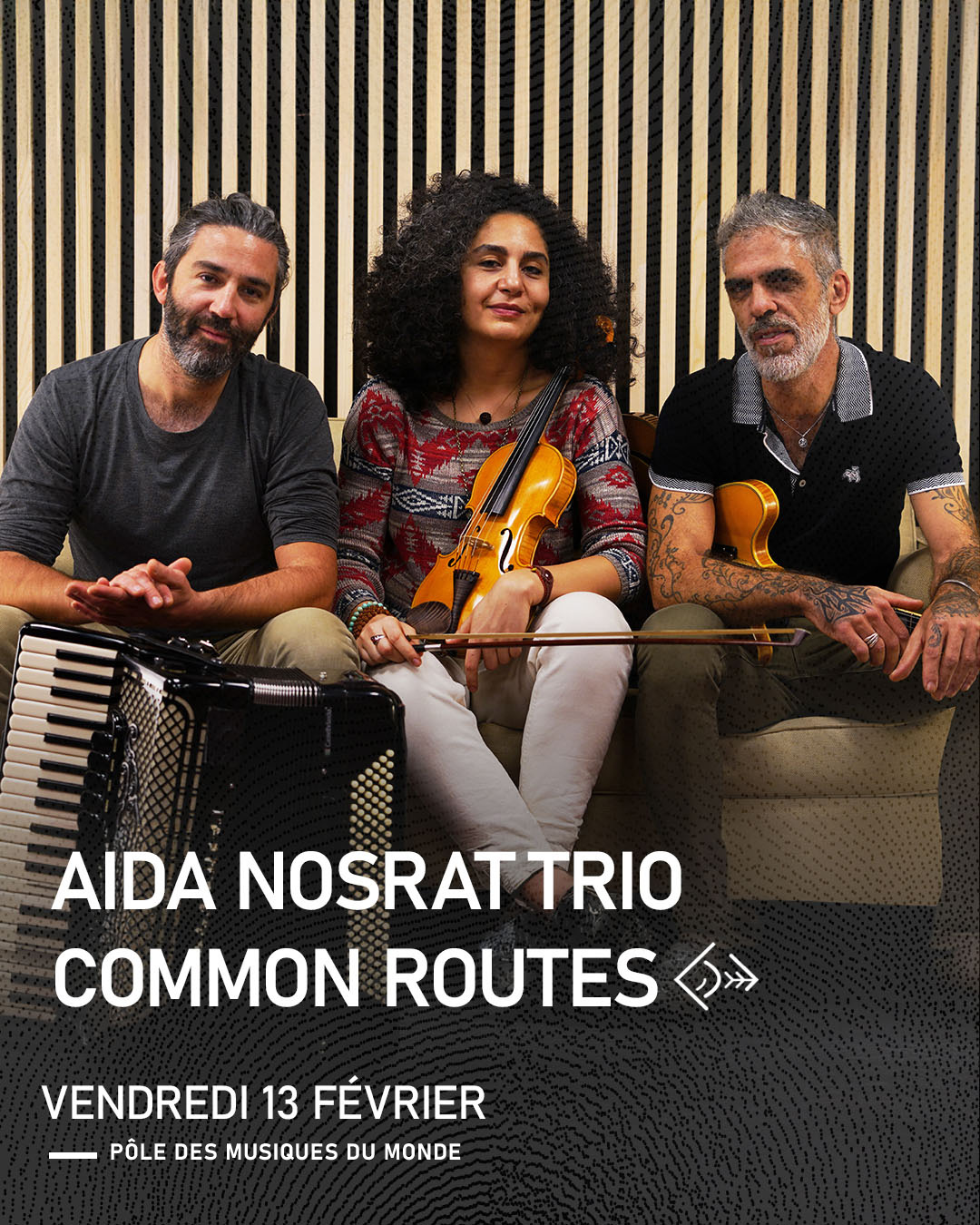 Aida NOSRAT (Violon), Antoine GIRARD (Accordéon), Olivier KIKTEFF (Bouzouq)